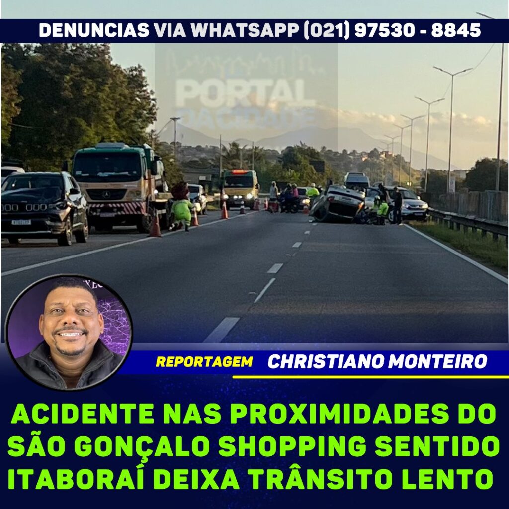 No fim da tarde desta terça-feira (30), um grave acidente envolvendo ao menos seis veículos — incluindo um carro de passeio que capotou — deixou o trânsito completamente congestionado na Rodovia Niterói-Manilha (BR-101), nas proximidades do Shopping São Gonçalo, no sentido Itaboraí.