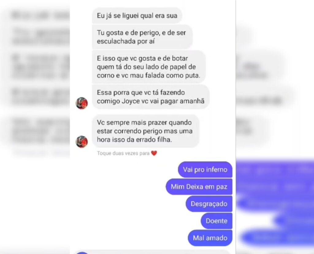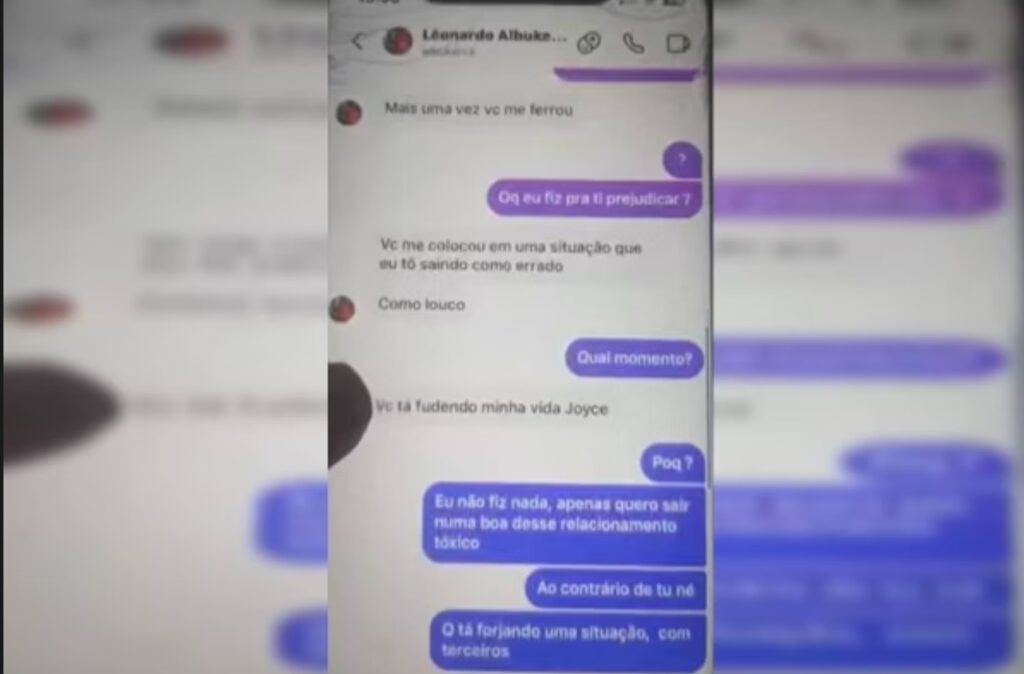 Joice Daniela, então, responde: “Eu não fiz nada. Apenas quero sair numa boa deste relacionamento tóxico”.